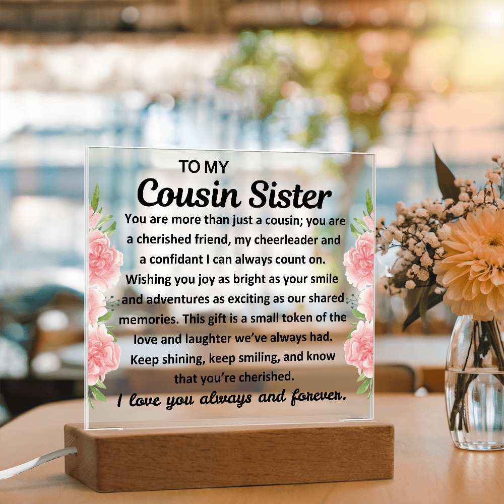 To My Cousin Sister Acrylic Plaque with Light Up Wood Base